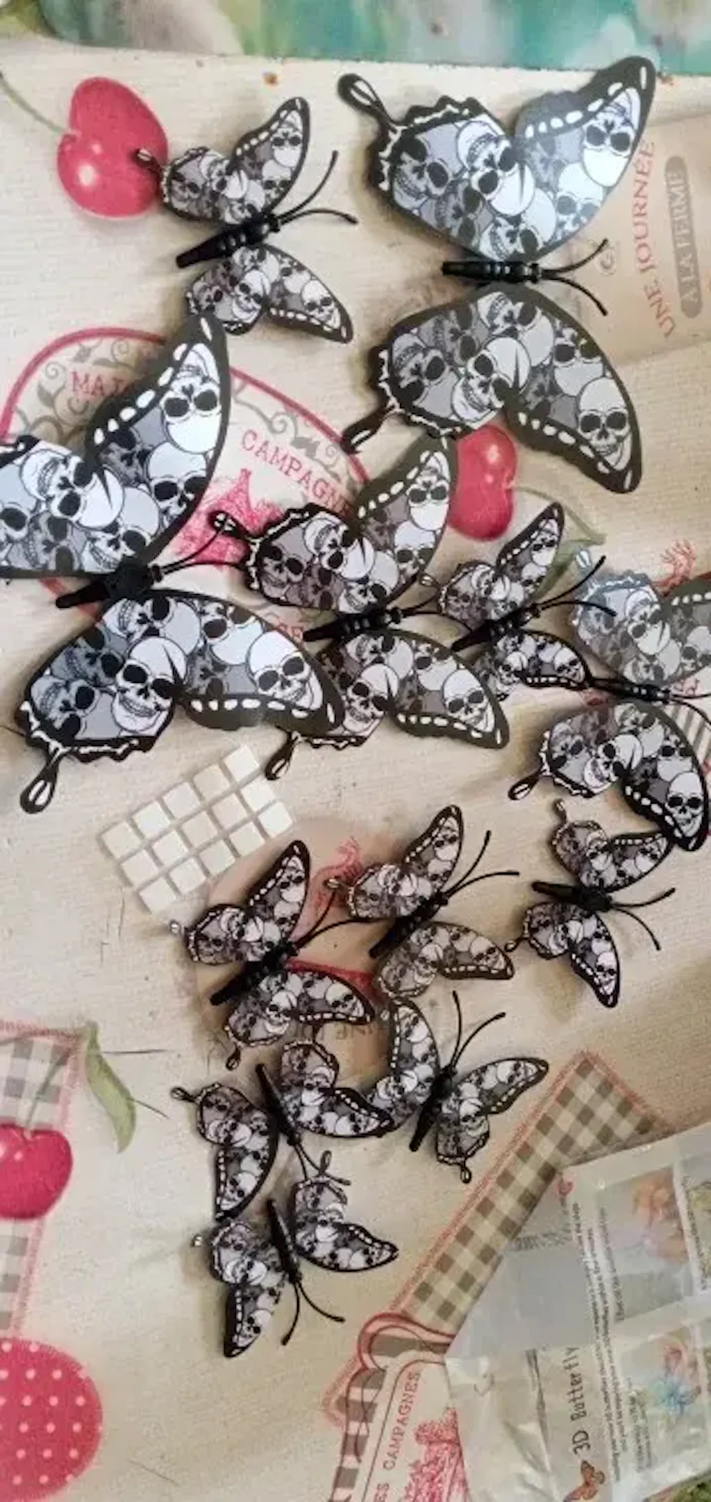 Set of 12 Double Skull Roses Halloween 3D Butterflies Decorate – Living Room & Bedroom 3D Stickers