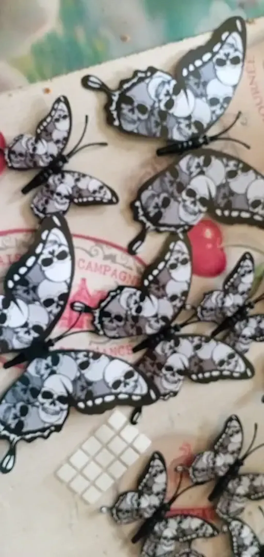 Includes 12 double skull and rose designs combined with delicate 3D butterflies